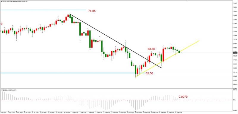 结构上看,下降趋势线经过回踩确诊,已经确定有效突破,后市看上涨。远期目标位在74.85美元/桶。市价已经和上涨趋势线解除,考验支撑作用,如果被有效突破,则下望65.56美元/桶。