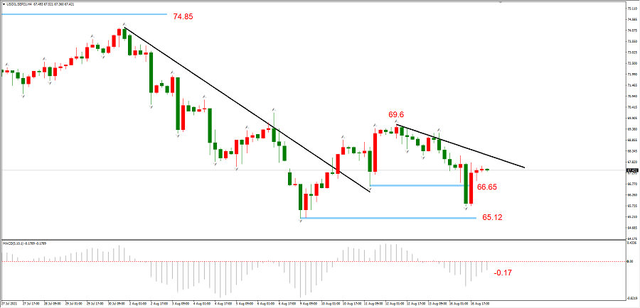 结构上看,下降趋势线依旧有效,支撑位65.12阻止价格进一步下跌,后市看区间震荡;