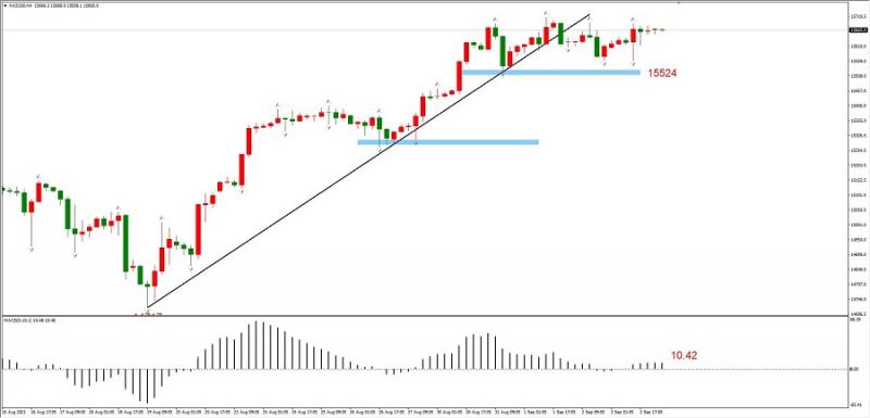 结构上,纳指长期多头趋势良好,历次回调均是买入时机,后市维持看涨判断。短线看,市价已经跌破H4级别上涨趋势线,近期关注15524,如果该价位被跌破,则回调走势开启。