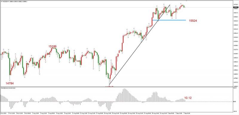 结构上,纳指长期多头趋势良好,历次回调均是买入时机,后市维持看涨判断。近期支撑位在15524(蓝色价格区),只要该价位不被跌破,就维持多头趋势。