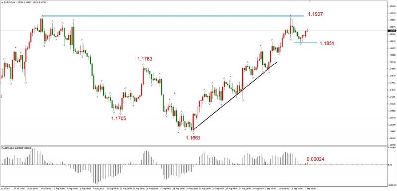 综合观点:趋势多头,但已经触及中期阻力1.1907,有回调压力。