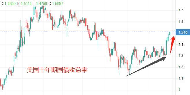 9月23日之前,美债收益率虽然在上涨,但涨幅极为缓慢,可以用“一步三回头”来形容。9月23日之后,连续5个交易日大幅上涨,自低点1.3090%上涨至今日高点1.5114%,累计0.20个百分点,可以用“一去不回头”来形容。