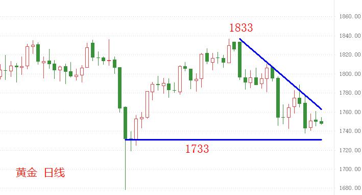 如果黄金能够下破1733,则空头开启加速,下一目标位在前期低点1677美元;