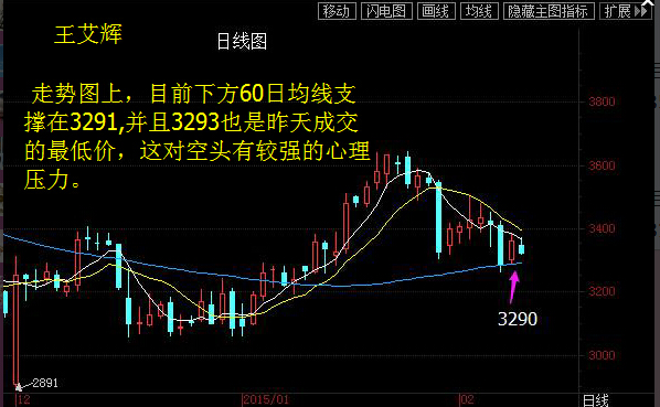 走势图上,目前下方60日均线支撑在3291,并且3293也是昨天成交的最低价,这对空头有较强的心理压力。专家技术教学讲解以及精准喊单策略体验群,专家腾讯联系方式:715596746.鼎世鑫诚VIP·投资联盟体验群:群号:181129084:入群验证wah6,无验证不通过,