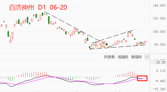 从近一月的走势来看,百济神州呈现出微弱的触底反弹特征,自低点76.8至今的最大反弹幅度仅为15%,关键阻力位130尚未被突破,反弹依旧处于被压制状态。MACD柱线较小,快慢线黏连,表明当前行情的震荡特征较为明显,向上的动能严重不足。