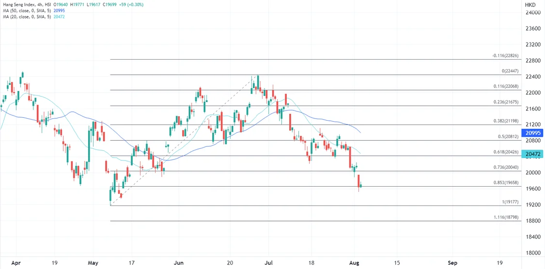 ATFX指出,日内市场情绪欠佳观望最新地缘局势,如果局势没有引起进一步担忧,预计港股在触及底部之后会跟随回升。技术上如果日内收盘守住19660,可以展望重返20000点关口上方,但相反如果避险加深,价格可能被推低至5月份创下的低点,在19200附近寻找支撑。
