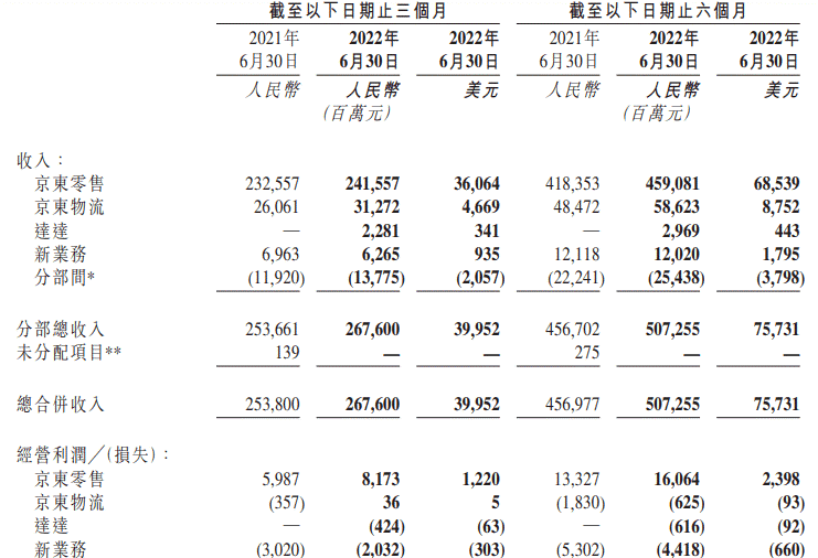 京东次季营收2676亿元(人民币,下同),好过预期的2616.67亿元,按年增5.4%,为连续五个季度放缓,也是多年以来首次录得个位数增长;列账纯利约44亿元,按年增4.5倍,远胜预期的16.72亿元,终止三季连亏;经调整纯利约65亿元,按年增40.2%,高于预期的44.19亿元。