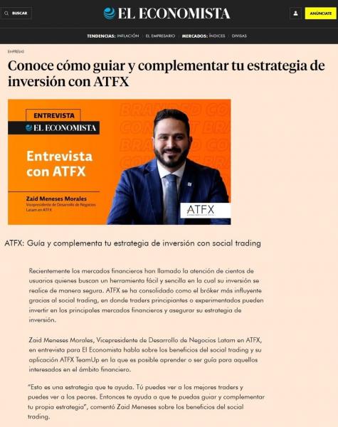 ATFX动态:“这是一个可以帮助你制定优异策略的产品。您可以看到市场中同期成绩卓越的交易者,也可以看到表现平平的交易者。因此,它可以帮助指导和补充您自己的策略。”近期,ATFX墨西哥办事处负责人Zaid Meneses Morales接受当地乃至国际影响力深厚的El Economista媒体采访,其中便谈到了社交交易及其ATFX TeamUp应用程序的优势。