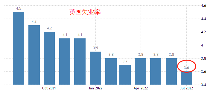 加息有可能导致经济衰退,特征是失业率提高。物价升高意味着商品供不应求、需求旺盛,加息会普遍遏制商品需求,最终有可能导致需求萎缩、供大于求。英国最新失业率3.6%,远低于充分就业标准线5%,劳动力市场拥有充足的空间来应对一定程度的经济衰退。当然,在失业率升高的过程中,英央行将遭遇较大的舆论压力。
