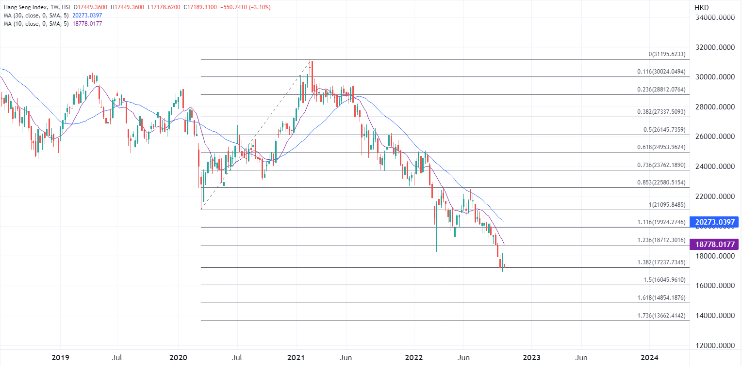 ATFX港股:港股9月份再度延续低迷,月线连续第三个月下跌,以13.69%的月度跌幅,在全球主要股指中排名靠后。恒生科技指数9月大跌逾19%,恒指、国企指数也跌逾13%。