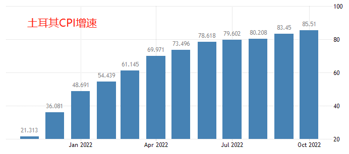 日本有安倍经济学,土耳其有埃尔多安经济学,两国虽相隔千里,但都遵循超宽松的货币政策。不同的是,日本经济在安倍经济学的引导下,通胀率依旧低位徘徊,经济没有出现过热的迹象。土耳其则不同,在埃尔多安经济学的引导下,其10月CPI增速飙高至85.51%,创出21世纪以来的极值。另外,由于终身雇佣制的存在,日本的失业率一直维持在3%以下的充分就业状态,而土耳其的失业率却高达9.6%,劳动力市场表现很不健康。