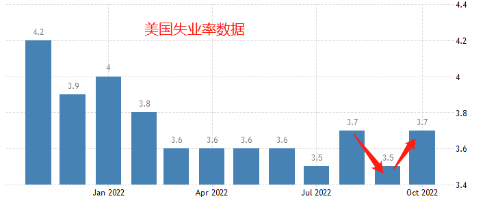 对于美联储来说,遏制高通胀是目标,失业率不飙涨是底线。加息会对投资和消费形成抑制,也会增加全社会的借贷成本。激进的加息会放大这种抑制效果,最终有可能导致经济衰退。8月份美国失业率为3.7%,9月份降低至3.5%,10月份再次回升至3.7%。三个月时间里,失业率表现原地踏步,这不会对美联储的货币政策构成威胁。一旦劳动力市场出现恶化迹象,比如失业率突破4%,即便核心CPI增速仍在上升,激进加息的步伐也将暂缓。