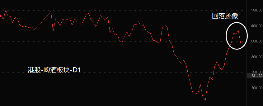 利好兑现后部分资金急于“落袋为安”是主要原因。以啤酒板块为例,本月以来,累计涨幅已经超过28%,创出近两年以来最大单月涨幅。但是,板块价格的中期空头趋势未改,由各路“抄底”资金共同推动的反弹行情,在板块价格达到高位后就会信心不足,继而出现争相出货的局面。只有新一轮的下跌波段洗出了大部分短线投机资金,并且板块价位未创新低,形成双底的支撑形态,才有可能出现新一轮更大级别的涨势。恒生指数的技术走势与啤酒板块类似,两者都需要新一轮的下跌来验证趋势是否已经反转。以目前的宏观经济和货币政策来看,反转的可能性并不高。