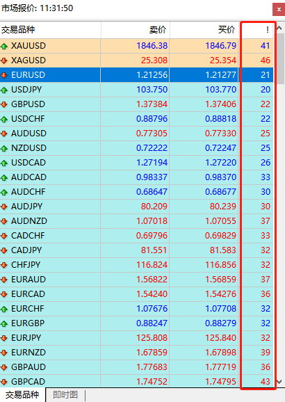 上图中的EURUSD点差显示为21,交易者需要自己理解,实际点差为2.1,也就是按照万分位计算。