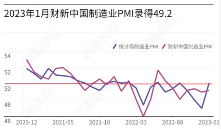 官方数据或许更加可靠,因为现阶段投资市场情绪较为乐观,制造业PMI站上50荣枯线更有说服力、更具合理性。乐观情绪来自股票指数的良好表现:今年以来,上证指数上涨5.37%,深证成指上涨9.24%,恒生指数上涨10.88%,均有强势表现。驱动内地股市上涨的因素有二:其一是支持地产业平稳健康发展的政策密集出台,市场对于2023年的经济展望偏正面,这是最重要的因素;其二是美股市场止跌,互联网板块超跌反弹,内地股市共振性走强。制造业PMI数据的波动符合经济周期变动规律,在国民经济支柱产业——制造业——迎来复苏窗口期时,制造业可以获得宏观经济回升的助益。美国股票市场对内地股市的影响主要通过中概股,代表性个股为腾讯控股和阿里巴巴。上述两支个股在2023年首月均有不错表现,对内地股市投资情绪有所助益。