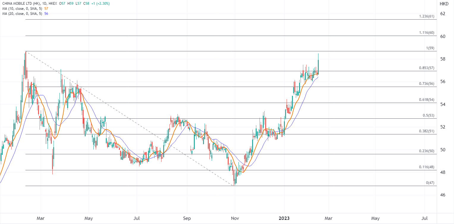 另外,日内港股通信运营板块盘中走强,也带动大市升势,三大通信运营商集体拉升,中国电信(00728)股价最高涨8%,中国移动(00941)最多涨4%,创历史新高,中国联通(00762)大涨5%。