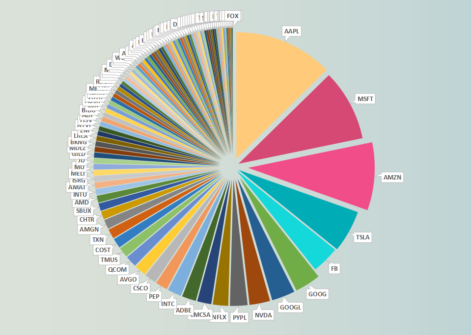也许上图的列表模式不能够明显突出美股的这种畸形权重,下面我们来展示饼图权重,这样就会一目了然:
