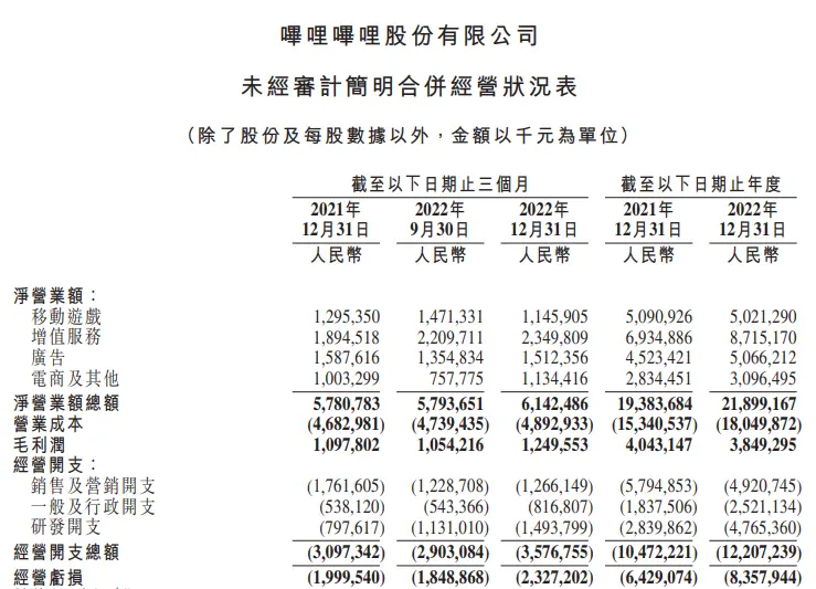 哔哩哔哩公布,去年四季度经调整(Non-GAAP)净亏同比收窄至13.1亿元人民币,较2021年同期收窄21%,表现优于市场预期。该公司高管在业绩会表示,今年公司的关注点会是增收减亏和追求健康的用户增长。
