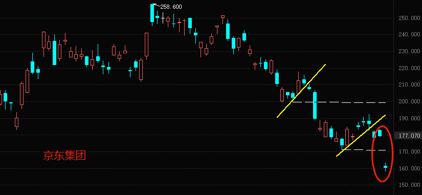 美国三大股指的跌幅在1.66%至2.05%之间,其中道琼斯指数已经出现趋势性转空的迹象。以阿里巴巴、网易和京东为代表的互联网板块,本身就具有股价“外向性”的特征,随着美股市场下跌而走弱在预期之内。美股的下跌主要是因为市场担忧今日21:30公布的非农就业报告,如果数据表现亮眼,则美联储超预期加息的可能性增大,美股的估值会相应走低。下周开始,非农数据的影响将大幅削弱,届时京东集团股价大概率出现补涨行情。