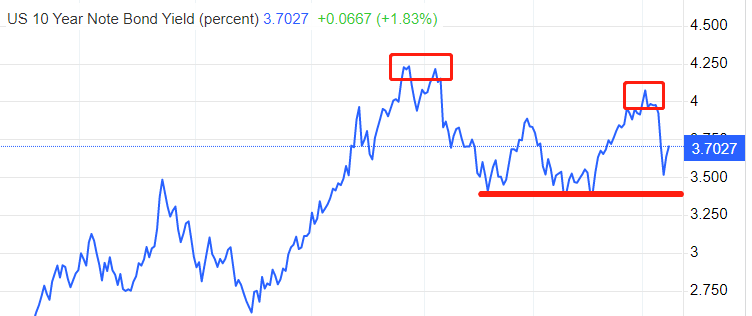 美债市场的走势结构不容乐观。2022年10月份和本月初形成的两个高点,构成显著的双顶结构。市场静待长期国债收益率跌破3.375%的颈线支撑位,一旦有效突破,将不会有人再继续预期美联储加息,美元指数也将跌入长期空头的深渊。因为购买过度美债而出现巨额亏损的硅谷银行,倒闭后的负面冲击不会像美国总统拜登所说的那么快消散,储户对于美国银行系统的担忧将持续很长时间。虽然恶性挤兑事件发生的可能性不高,但银行系统内购买国债的热情将大降,毕竟所有银行都害怕步入硅谷银行的后尘。