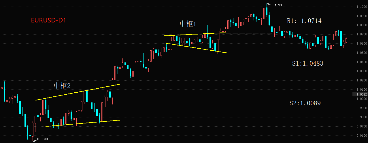 技术角度看,欧元兑美元的回调波段已经和之前上涨波段的中枢1完全重合,如上图所示。这意味着未来行情将会出现两种发展路径:第一种路径是在中枢1的区间内保持窄幅震荡;二种发展路径是由多头趋势转变为空头趋势。短期支撑位S1:1.0483至关重要,该价位被有效跌破之后,则意味着趋势转折得到确认。从近几天的行情走势来看,黄金的涨势远远强于欧元的涨势。由于存在硅谷银行事件的冲击,所以美元指数下跌的确定性较高。黄金是参与此轮行情的最优品种。由于瑞士信贷对欧元形成压制,所以即便美元指数下跌,欧元兑美元的汇率也不一定会上涨。其他亚洲的非美货币,比如日元、人民币、新加坡元,受到欧美银行业负面影响的可能性较小,值得重点关注。
