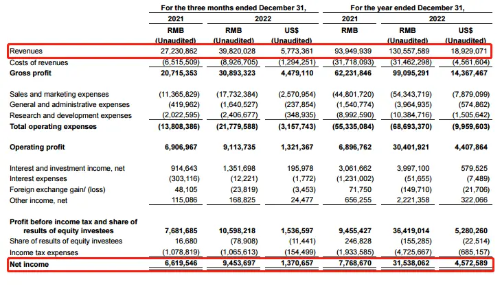 营收增速整体上处于下降趋势。乍看起来,38.97%的营收增速非常高,但却是近六年以来的最低水平。2018年的营收增速甚至高达652.26%,2019年增速为129.74%,2020年为91.37%,2021年为57.92%。如此明显的下降,不由得让股票市场担忧其未来发展前景。虽然成长性正在下降,但拼多多盈利方面正在转好。2020年之前一直为净亏损状态,2021年开始净利润转正,2022年实现200亿元以上的净利润。从营收和利润的表现来看,我们可以得出结论:拼多多已经不再处于快速成长期,而是进入了成熟期。成熟期的上市公司不应当给予过高的动态PE估值,所以拼多多股价的下跌本质上是“杀估值”。