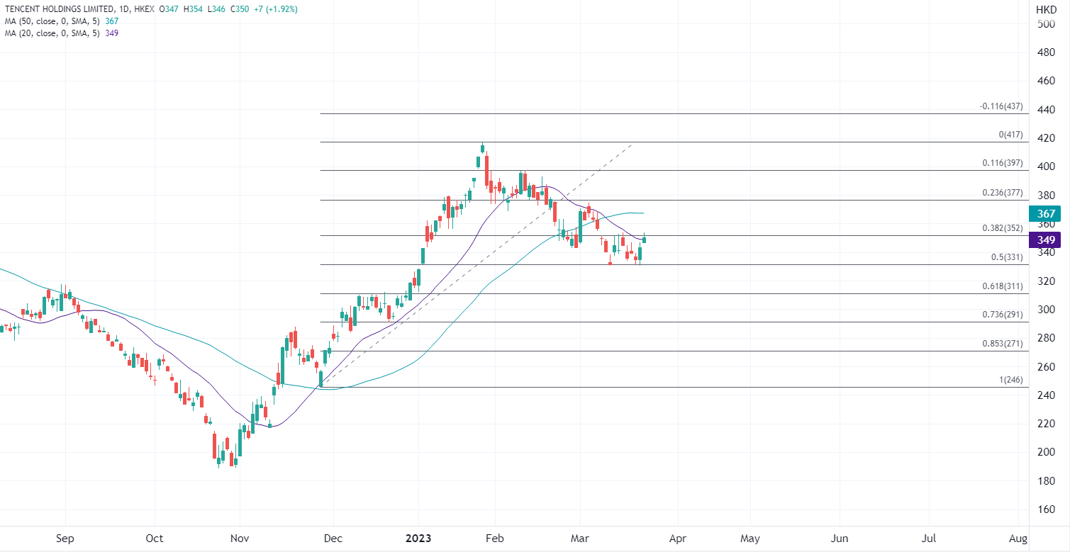 ATFX港股:腾讯控股将于今日公布去年业绩,根据彭博发布预估,在经历了两个季度的收缩后,腾讯(00700)收入可能在2022年最后三个月勉强增长0.2%,预计第三季度将反弹至6.7%。