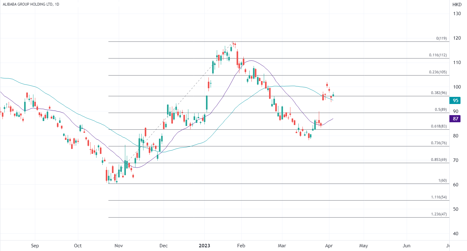 阿里巴巴自3月下旬启动的反弹未能如愿突破100港元关口,不过并没有自高位大幅跌落,技术上尝试守稳均线上方,峰会前预计有利好情绪酝酿提供支撑,100至105港元继续充当初步阻力区间。