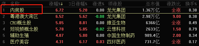 港股市场假期后首个交易日,内房股板块以6.72%的涨幅排名板块榜第一名。A股市场房地产开发板块也实现了1.23%的涨幅。港股市场内房股板块最大市值的个股是华润置地,A股市场房地产开发板块最大市值的个股是万科。2022年华润置地实现了2071亿元营收,同比减少2.38%;同期,万科实现5038亿元营业收入,同比增长11.27%。万科的营收总额约为华润置地的两倍,且前者处于正增长通道,而后者出现下降。两相比较,万科更能代表内地房地产市场发展的趋势。并且,中国恒大和融创中国均在港股市场上市,两者的暴雷事件对港股市场内房股板块走势影响恶劣。在内地楼市复苏的初期,在A股市场上市而没有在港股市场上市的万科,更有可能获得市场的青睐。