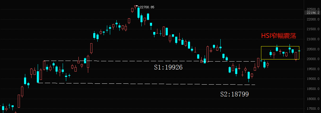 ATFX港股:四月份以来,股票市场一直缺乏持续热点来吸引资金流入。3月份硅谷银行的事件已经告一段落,四月初公布的美国非农就业报告乏善可陈,就连本周的美联储会议纪要也没能引起广泛的讨论。消息面如此清淡,恒生指数自然不会出现大波动。最近两周,恒生指数的最高价为20750,最低价为19885,波动幅度在5%以下,日线级别k线呈现出阴阳交错特征,窄幅震荡态势显著。恒生指数的三大权重板块:银行、互联网、房地产,仅房地产板块因为楼市成交量的回升而呈现书上涨态势。未来,如果三大板块儿能集体发力,恒生指数或将打破震荡状态。