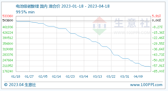 ATFX港股:据第三方数据,电池级碳酸锂价格跌至最低17万元/吨,远低于去年峰值水平60万元/吨。电池级碳酸锂主要用于生产锂离子电池的正极材料以及电解液,其价格的下跌将直接导致动力电池制造成本下降。今年以来,燃油车市场因为市场份额的缩减而推出降价清库存措施,新能源车市场因为动力电池价格的下降而开始纷纷下调汽车售价,一时间整个汽车业开启“降价潮”,颇有进入“淘汰赛”阶段的味道。
