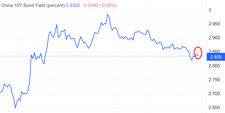 中国十年期国债收益率在今天出现微幅下降,代表债券市场对未来经济复苏的前景表示悲观。债券收益率越低,代表未来中央银行降息的可能性越高。降息是宽松货币政策,离岸人民币的币值将随之下降。其实,人民银行一直处于宽松货币状态,原因之一就是中国房地产市场表现疲软,以及中国近些年的GDP增速不及预期。需要提醒的是,由于美元居于霸权货币地位,所以USDCNH受到中国货币政策的影响较小,而主要受到美联储货币政策的主导。