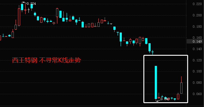 ATFX港股:截至今日11:00,西王特钢以31.67%的涨幅位居港股涨幅榜第二位,最新成交价0.079港元,成交额701万港元。低股价、低成交量、高涨幅,怪异的行情特征引起市场广泛关注。另外,西王特钢在实现今日大涨之前,连续七个交易日保持极窄幅震荡(4月6日至18日),4月4日(复牌首日)还曾出现61.94%的恐怖跌幅,如此不寻常的K线走势,令市场人士满腹狐疑。