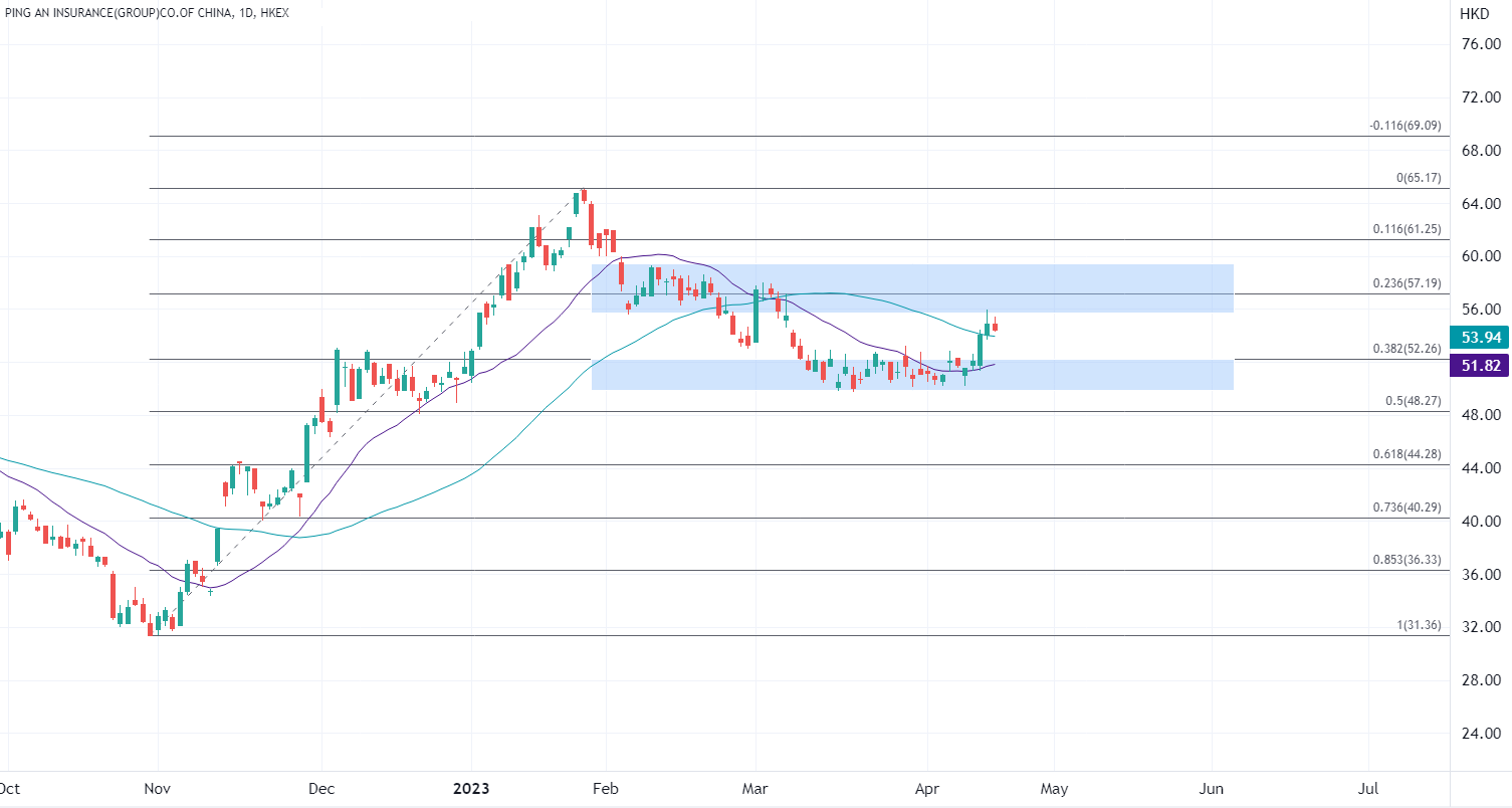 平安保险股价自上周以来实现了区间和均线的连续突破,当前尝试以下一区间为目标,保持在50均线上方,需要上破56港元来打开更大的上涨空间,届时留意57-60美元的阻力。