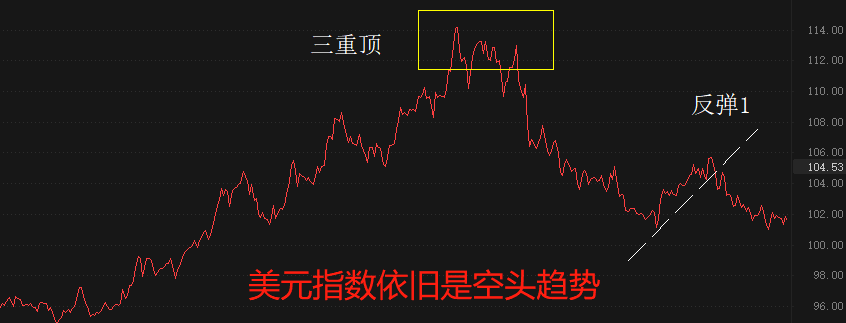 纯技术角度看,2022年9月份和10月份,美元指数形成三重顶结构,之前的多头趋势宣告终结。今年以来,美元指数仅在2月份出现了显著反弹,但是该反弹并没有破坏空头趋势结构。中期来看,美元指数空头趋势延续,目标位在100整数关口。