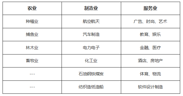 ATFX科普:了解产业空心化的前提,是要了解什么叫做产业。经济学中将产业分位三大类:农业(第一产业)、制造业(第二产业)、服务业(第三产业)。粗略的讲,三大产业的总和就是一个国家的GDP总量(国内生产总值)。以下是三大产业分别包含的细分行业: