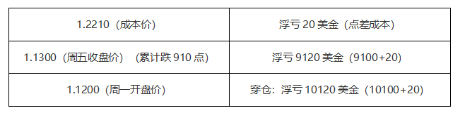 爆仓已经够让人心碎了,但更严重的是穿仓。爆仓好歹会剩余一部分资金,聊以慰藉;穿仓则会导致账户资金清零,而且在大部分情况下,会倒欠平台方的钱,形成负债。穿仓公式为:浮亏>账户净值。也可以用:净值<0来表示。很多人会认为,既然平台方会强制平仓,怎么还会出现穿仓的情况?答案也很简单:行情发展过于剧烈,来不及强制平仓。平仓指令从发出到执行,存在几毫秒的时间差。这段时间虽然很短,但在剧烈的行情面前,市场价格可以出现巨大的变化,结果就是平仓指令无法执行,也就是无法按照指定价格成交。另外一个原因是流动性问题。在行情大起大落时,盘口极为脆弱。比如,因为利空消息,有10W手的卖单涌入市场,可买单只有1W手,此时剩余的9W手订单将因为流动性不足而无法成交。伴随接踵而至的新来的空单,市场必然会出现大区间的日内跳空,也就是在很多价位上,只有卖单委托没有买单委托,此价位无成交,直接转入下一更低的价位。历史上的瑞郎黑天鹅事件、英国公投、美国大选,甚至于远超预期的非农数据,都会导致上述情况发生。所以,在重大风险事件发生前,平台方往往会提高保证金比例,以规避流动性风险。最后一种情况是隔日/隔周跳空。EURUSD虽然24H交易,但周六和周末会休市。如果有重大风险事件在周六末公布,周一开盘时,EURUSD就会出现跳空。如果跳空幅度足够大,直接导致浮亏>账户净值,那么就算是周一开盘时第一时间强制平仓,也会导致净值<0的情况。
