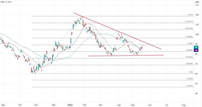ATFX指出,阿里巴巴的上一份收益报告喜忧参半,公司收入超过预期,净利润率大幅上升(从3%上升到14%),如果最新的业绩缺乏惊喜,股价难以有明显上行回应,不过如果能看到阿里取得稳健的季度业绩,对股价也是关键支撑。