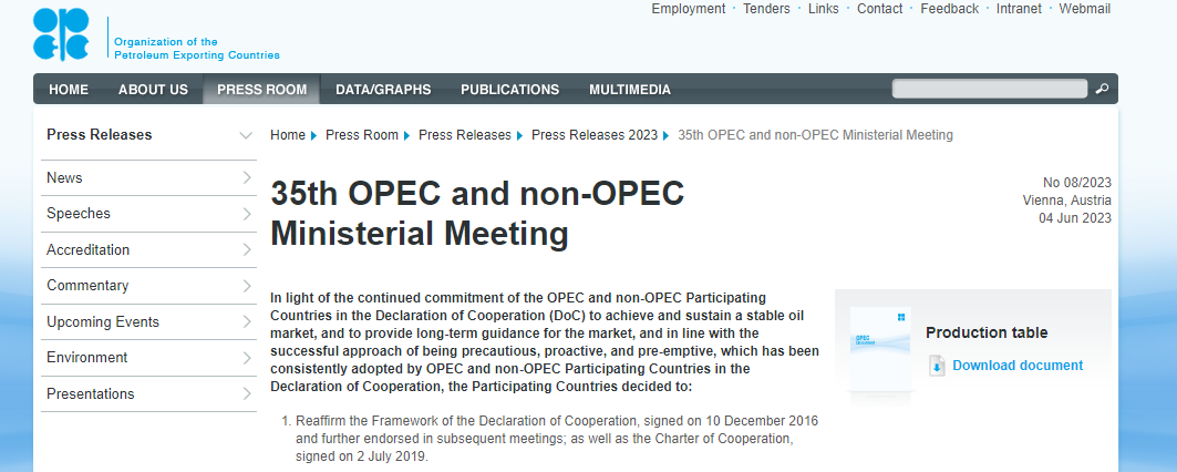 ATFX国际:上周日的OPEC+会议宣布:2023年已达成的减产协议将延续到年底,各国同意从2024年1月1日至2024年12月31日,欧佩克与非欧佩克产油国原油日产量调整为每天4046.3万桶,与目前的产量相比,2024年的原油日产量下调了约140万桶。OPEC+的减产力度并没有超出市场预期,2024年的减产太遥远,对当下国际油价的冲击力有限。OPEC+会议过后,沙特单方面宣布,从7月起,将自愿再减产原油100万桶/日,即从此前自愿减产原油50万桶/日提升至150万桶/日,为期一个月,减产措施可考虑延长。沙特的减产动作令市场颇感意外,其稳定油价的决心显然被市场严重低估。OPEC+会议与沙特减产的双重利多因素提振下,截至北京时间今日17:00,WTI上涨2.43%,最新报价73.48美元。预计在美盘时段还有可能大涨。