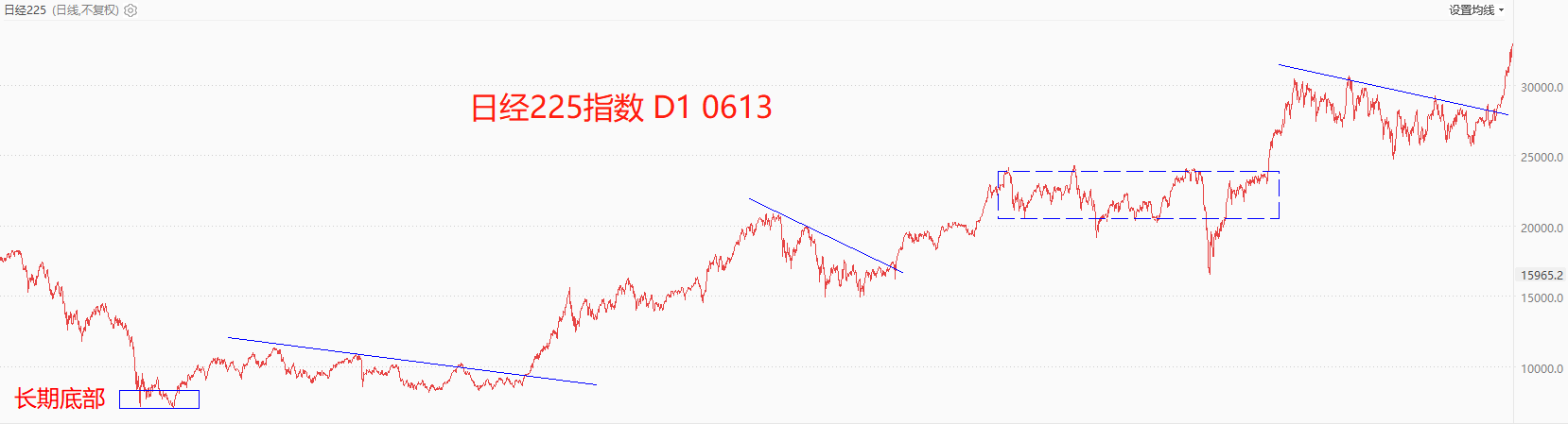 今年以来,日经225指数累计涨幅已经超过26%,并且日线级别仍在维持强势上涨状态。2009年2月份,长期底部形成至今,日经225指数经历了四次回调,但仍保持了低点不断抬高的多头结构。今年1月份以来,日经225指数开始发力上涨,期间几乎没有显著回调,背后的主要驱动力就是越来越健康的日经宏观经济数据。低失业率、低利率、合适的通胀率,三重利多因素叠加,造就了当前的强势多头。