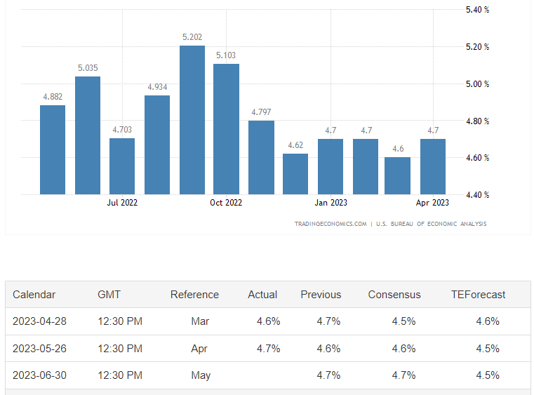 PCE数据是美联储决策的重要参考指标。美国的5月核心PCE物价指数年率,将于本周五22:30公布,前值为4.7%,预期值持平。PCE数据与CPI数据类似,都用来衡量美国消费品市场的价格波动情况。由于5月份核心CPI年率从5.5%下降至5.3%,所以核心PCE物价指数仍存在超预期下降的可能性。美联储6月份的利率决议已经宣布暂停加息一次,7月份的利率决议会否加息成为市场关注焦点。如果周五PCE数据公布值显著下降,关于7月份加息的预期将大大降温。反之,市场的主流预期仍将锁定在“加息25基点”方面。