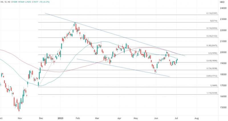 ATFX港股:港股下半年开局首日升逾300点后,今早低开高走,半日升逾百点,恒指半日收报19412,升106点或0.55%;国指收报6624,升34点或0.5%;科指半日升0.9%,收4091。南下资金半日净流入22.49亿港元,大市成交额为390亿港元。