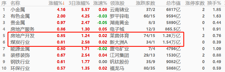 A股市场,小金属以4.16%的幅度领涨,其次是有色金属和贵金属。涨幅榜前十当中,万亿市值板块仅占2席,数量较少,下午盘或无法扭转跌势。涨幅榜当中,与“小金属”相关的板块占5席,形成今年交易主线。“小金属”板块同时在港股和A股市场走强,主线特征进一步加强,建议重点关注。房地产开发板块虽然位列涨幅榜第五位,但长期走势仍呈显著空头,在底部结构尚不稳固之前,建议保持谨慎。