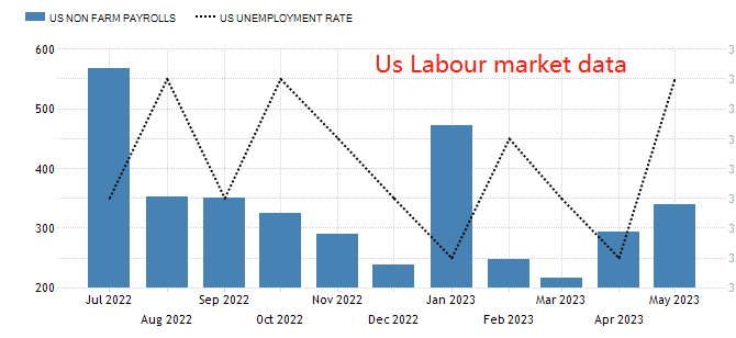 劳动力市场是一个系统,有新增就业,就有新增失业。在就业人口稳步走高之际,每月的初请失业金数据也在冲击30万人大关。两项抵消之后,沉淀下来的失业率数据更能体现出美国劳动力市场的真实面貌。5月份,美国失业率从3.4%升高至3.7%,虽然仍处于充分就业状态,但显示出趋坏迹象。如果本周公布的失业率数据有所下降,加息预期将再度升温;反之,则会大大加剧“美国经济潜在衰退”的预期,于美指不利。