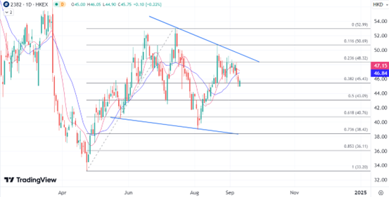 ATFX港股:科技股转为承压,恒指区间守势或被向下打破 ATFX:港股受压,恒指低开233点后大市跌幅迅速扩大,半日跌348点,收报23,224点,午后跌势持续,跌幅维持超过300点。国指半日跌146点或1.71%,报8,413点;恒生科技指数跌134点或2.55%,报5,166点。 科技股多数挨沽,阿里(09988)天猫618首阶段家电及手机数码品类成