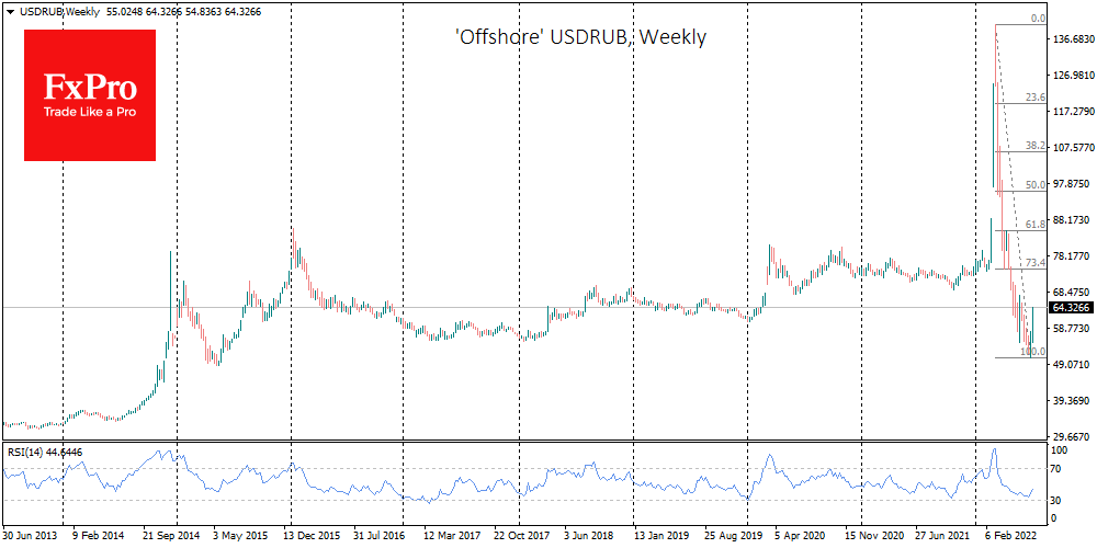 其次,俄罗斯银行正在降低利率并放松货币管制。有报道称,可能每月向不友好国家撤回高达100万美元的资金,这让卢布市场上的卖家重新振作起来。