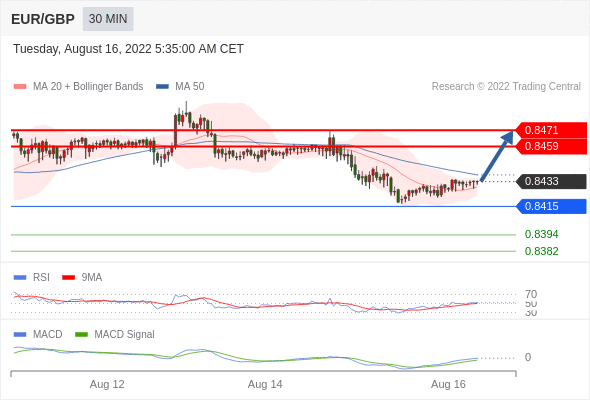 欧元/英镑 当日内: 看涨。