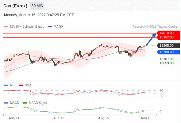 德国DAX指数期货 (Eurex)? 当日内: 看涨,当 13788.00 为支撑位。