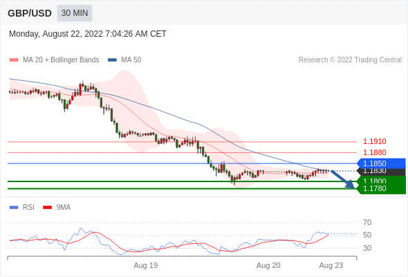 在 1.1850 之下,看跌,目标价位为 1.1800 ,然后为 1.1780 。