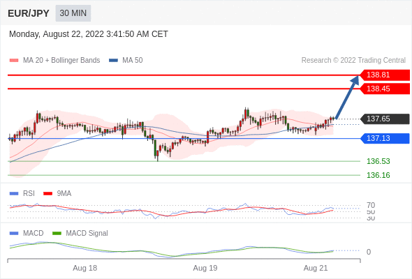 欧元/日元 当日内: 看涨,当 137.13 为支撑位。